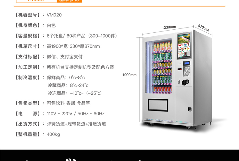 訂購標配:制冷機組+22寸液晶觸摸屏+TEI45工控主板+ITL紙幣接收器+紙幣找零器+微信、支付寶支付模塊
