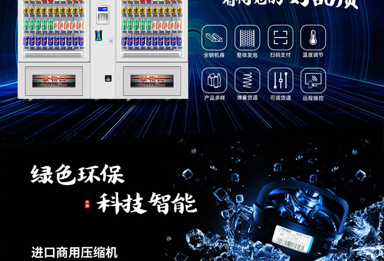 訂購標配:ITL紙幣接收器+硬幣找零器+左柜制冷機組+微信及支付寶支付模塊