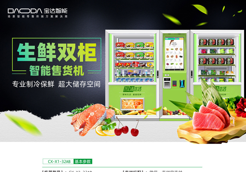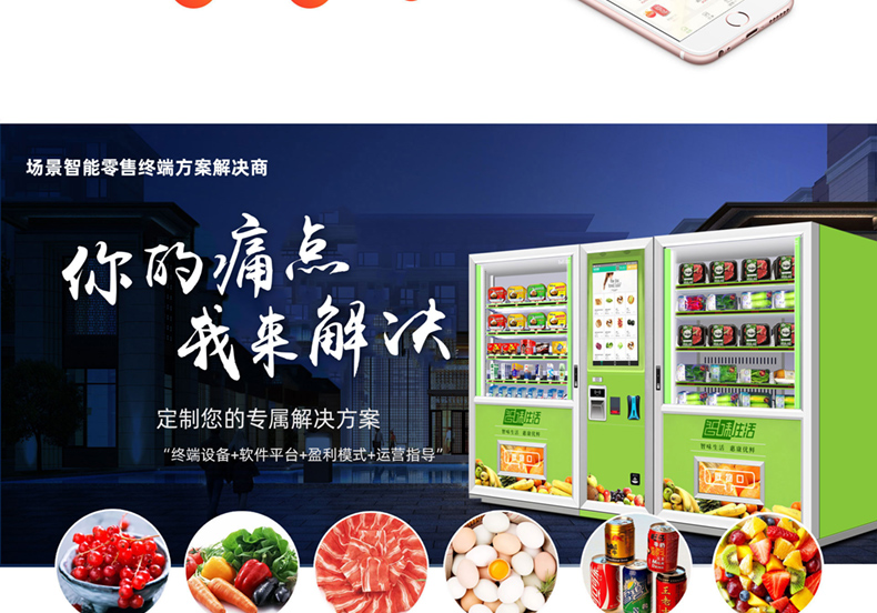 售賣類型:可售飲料 食品 果蔬 盒飯 糧油 肉類 海鮮等生鮮冷鏈商品