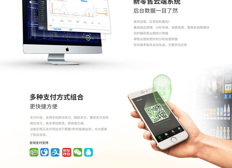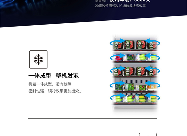 訂購標配:(0-8°c)制冷機組+數碼電子標簽+智能防盜門+智能電動取貨門+22寸液晶屏+觸摸屏+TEI45主機+微信及支付寶支付