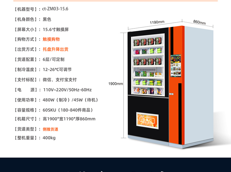 售賣類型:可售飲料 食品 果蔬 盒飯 糧油 肉類 海鮮等生鮮冷鏈商品
