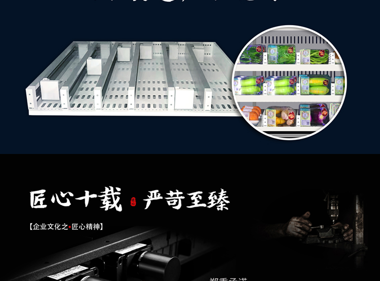 訂購標配:(0°c~8°c )制冷機組+數碼電子標簽+智能防盜門+智能電動取貨門+22寸液晶屏+觸摸屏+TEI45主機+微信及支付寶支付