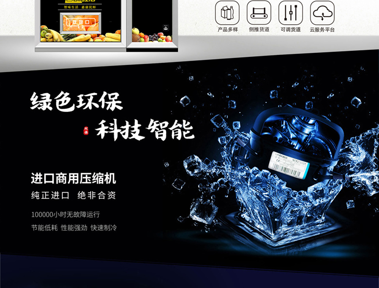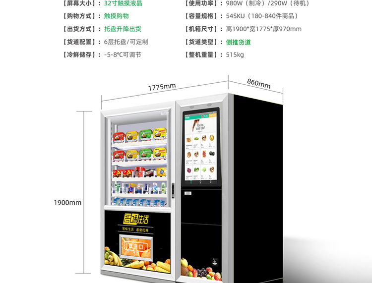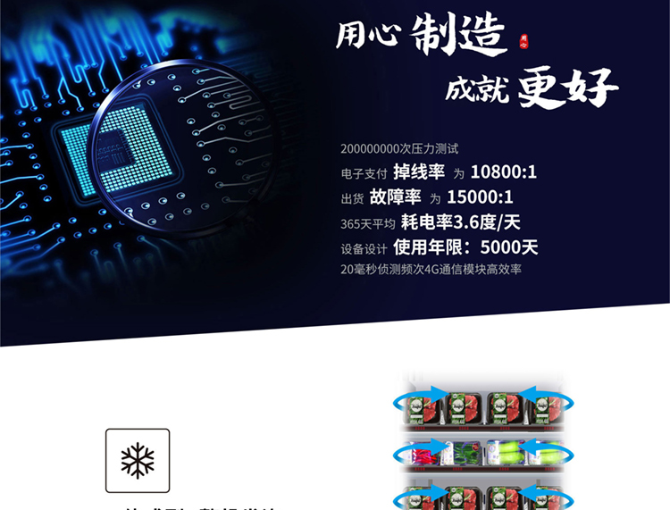 訂購標配:(0°c~-25°c )制冷機組+數碼電子標簽+智能防盜門+智能電動取貨門+32寸液晶屏+觸摸屏+TEI45主機+升降梯接貨+微信及支付寶支付